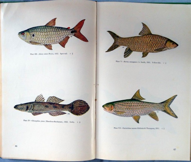 Hardcover octavo (57mm x 248mm) book in the original publisher’s green cloth on board covers with a vignette of a leaping fish and gilt titles to the front and spine, in Good condition; pictorial dust-wrapper showing wear to the top near the spine in Fair to Good condition. Eight preliminary plus 171 pages of text including appendices and index; 14 colour plates plus numerous photographs and illustrations in the text; maps on front and back end-papers. This book describes the fish of the area covered, details how to find them, describes angling techniques and gives useful references for further contact.