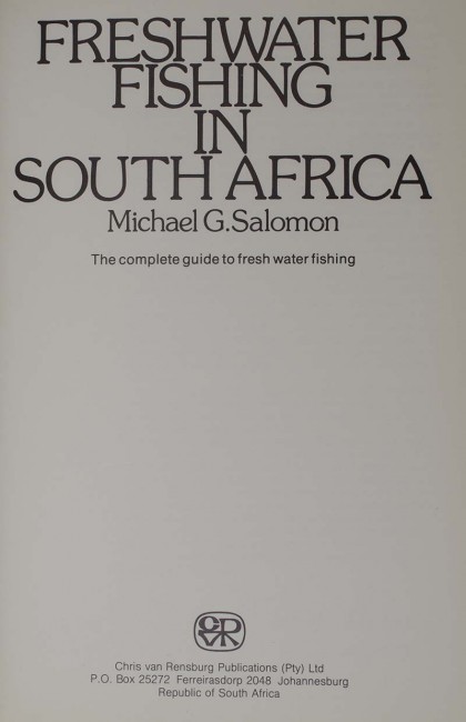 FRESHWATER FISHING IN SOUTH AFRICA(Michael G. Salomon) - Hardcover Octavo, Royal Blue Full Leather binding with 156 pages. Gilt titling to the front/back and spine, all page edges are in gilt. Interesting colour illustrations and fishing technique drawings throughout the book. Binding is tight and the book is in excellent condition (As New).
