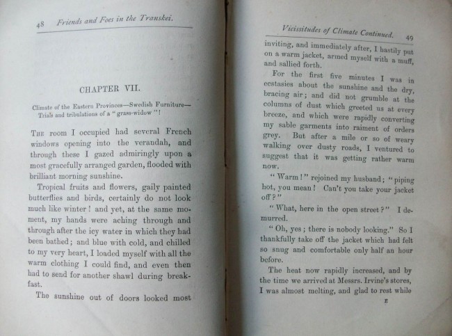 A narrative of two years' residence in South Africa, 1876-8, the latter part of which was spent in Kaffraria, where the husband of the author had a Government appointment. There is a description of the ox-waggon journey up country, the beautiful scenery of the banks of the Buffalo River, and the difficulties and inconveniences connected with South African travel at this period.