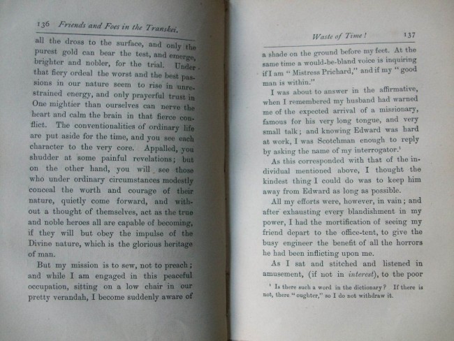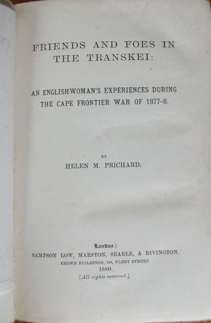 In July 1877 Mr.and Mrs Prichard started from King William's Town for their destination in the Transkei, i.e. the Idutywa Reserve, which they reached safely after somewhat rough travelling. They were, however, not destined to settle down to a quiet life in this peaceful spot as soon after their arrival, the Kaffir War broke out, and the little settlement became alive with military and civil visitors. Mr.Prichard had to go on duty to Umtata, and it is stated that shortly after the house was rushed by a body of refugees and fugitives who made themselves perfectly at home, helping themselves to everything in the place without any reference to the mistress of the establishment. Later on Mrs. Prichard packed up some of her goods and retreated to the mission station at Blythwood where she experinced much privation and discomfort owing to insufficient supplies.