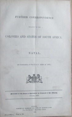 Further Correspondence relating to the Colonies and States of South Africa-NATAL (In Continuation of Part II of C. 1342-1 of 1875.)