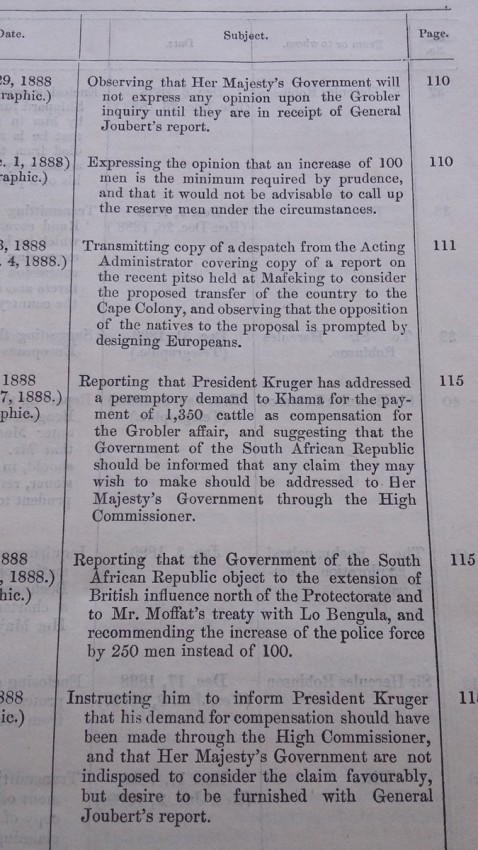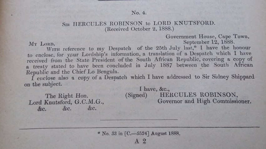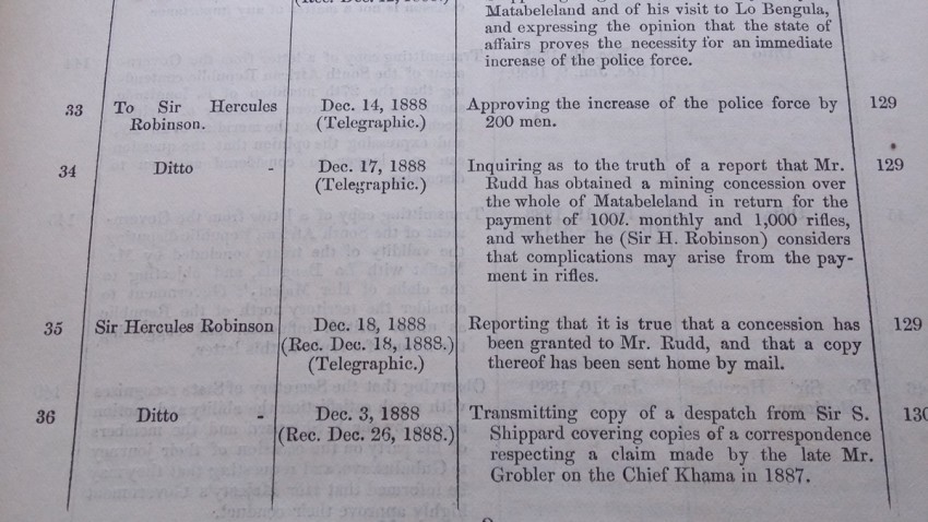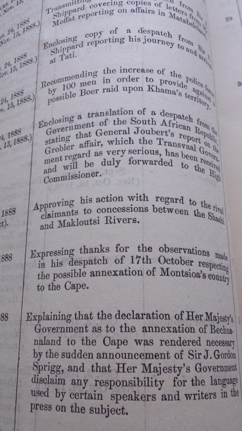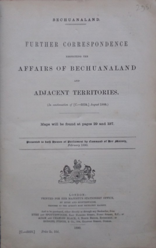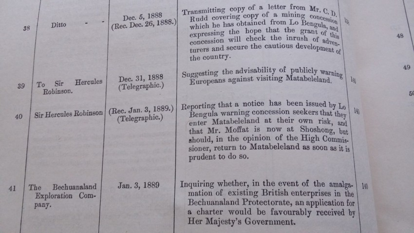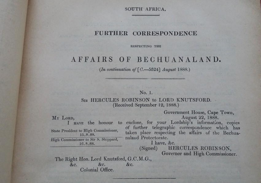 Much of correspondence between Sir Hercules Robinson, The Bechuanaland Exploration Company, British South Africa Company, Her Mayesty's Governement Office, etc.