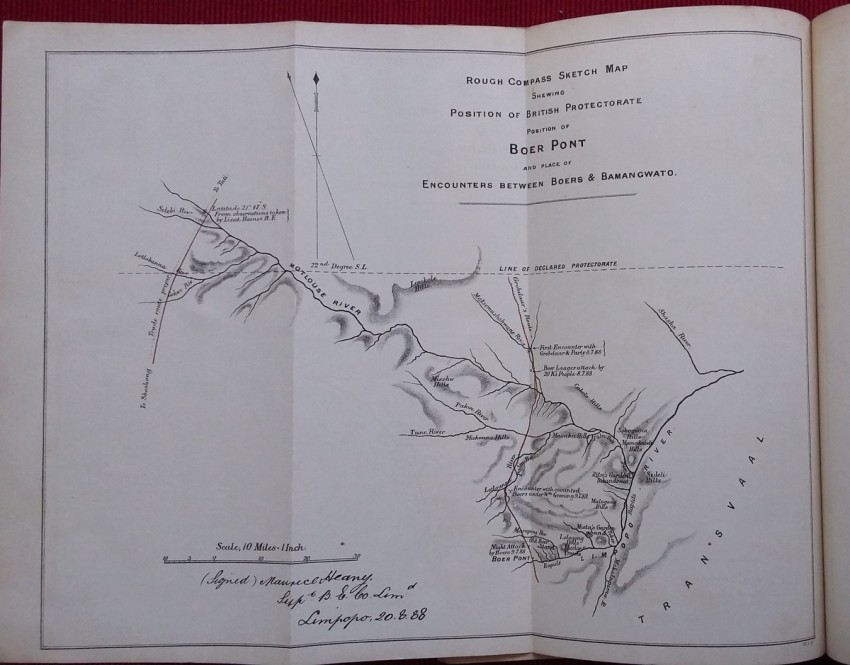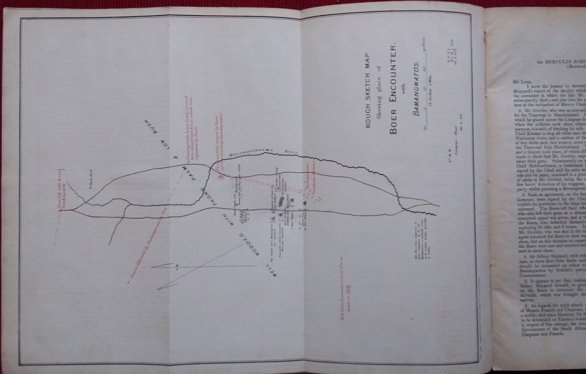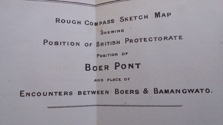 2) Rough compass sketch map showing position of British Protectorate, position of Boer Pont, and place of encounters between Boers and Bamagwatos