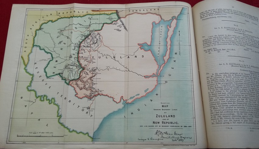 - Coloured folding sketch map shewing Boundary lines of Zululand and New Republic;