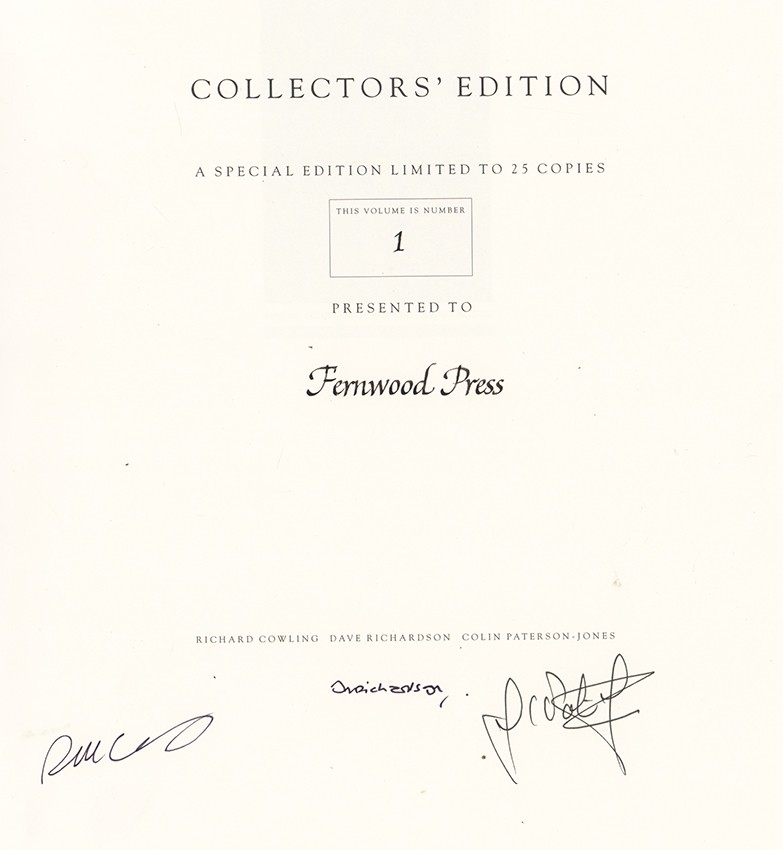The limitations page reads: Collectors' Edition. A special edition limited to 25 copies. This volume 1 is presented to Fernwood Press (Pty) Ltd signed by the author and photographer.