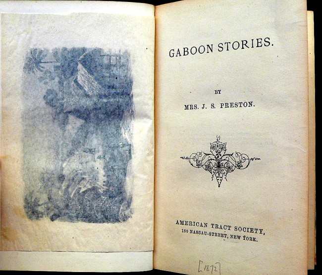 'I will tell you of a visit I made to an out-station soon after I readied Gaboon. Mr. and Mrs. Wilson invited me to go with them to attend the examination of Mr. Dorseys school at Prince Glass village, two miles up the river. It was a pleasant row in the boat-along the green banks, and we soon reached the place, and climbed the steep hill to the teachers house. This is near what was formerly the OzjTunga mission station. where Mr. Griswold died in 1844. It commands a beautiful view of the river and sea. Indeed, all our stations ir Gaboon are very pleasantly situated. On entering the schoolroom we found a number of natives assembled, seeming quite interested in the examination of thirty bright little boys and girls. Mr. Dorsey was a colored American; but Mary, his wife, was a native of Cape Palmas, and had been educated in the mission. The children recited very well in the primary English studies, and then Mary examined her little girls in reading and spelling in Mpongwe, after which the whole school recited the Mpongwe Catechism in concert. At the close, Mr. Dorsey invited the visitors present to stay and take dinner. As Mary seemed to wish it very much, we stayed with the rest. We sat down at a long table, with about twenty natives, some of them chiefs. The dinner was of plantains, roasted and boiled, yams, sweet potatoes, rice, different kinds of fresh fish, besides salt beef and sea-biscuit from the mission store. Everything was nicely cooked, and we enjoyed it as much as did the natives. When we had finished eating, two little boys quietly took away the plates, and brought on coffee and roasted peanuts. It was all managed very quietly, without mistakes or confusion...'