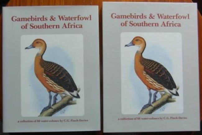 A collection of 68 watercolours by C.G.Finch-Davies. A limited edition # 401 of 5026. Slipcase and dust jacket Fine.190pp including list of benefactors. originally, the paintings were commissioned by Boyd Robert Horsbrugh, to illustrate his book "The Game Birds and Waterfowl of South AFrica", published in London in 1912. It was widely acclaimed and brought Finch-Davies recognition as an outstanding bird artist. All 68 illustrations are exceptional in that they have coloured backgrounds, whereas Finch-Davies's other paintings (numbering over 1000) have simple, pencilled in ones. This collection of originals came to light, through their donation to the Transvaal Museum, Pretoria by Boyd Horsbrugh's nephew who lives in USA. The text accompanying each plate has been compiled by Dr. Alan Kemp of the Transvaal Museum, providing a useful insight into the biology of the species covered in this work.