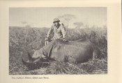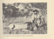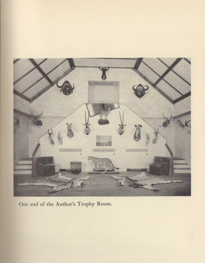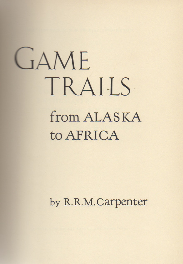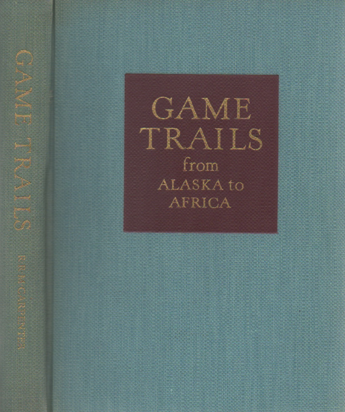 Carpenter describes his hunting adventures on two continents. In North America, he hunted brown bear and polar bear, as well as bighorn sheep, antelope, and other game. In his 1936 safari to Kenya Colony, he relates collecting a Cape buffalo for the Academy of Natural Sciences of Philadelphia, then entering Masai territory where he bagged lion, topi and klipspringer. Near Embu southeast of Mt. Kenya, his party encountered another herd of buffalo, successfully taking a bull and rhino as well. Original textured blue cloth with gilt spine titles and gilt, colored title square on the upper boards. Cloth lightly sunned at edges. Original endpapers firm. Well illustrated with photos. This copy free of foxing, clean and tight.