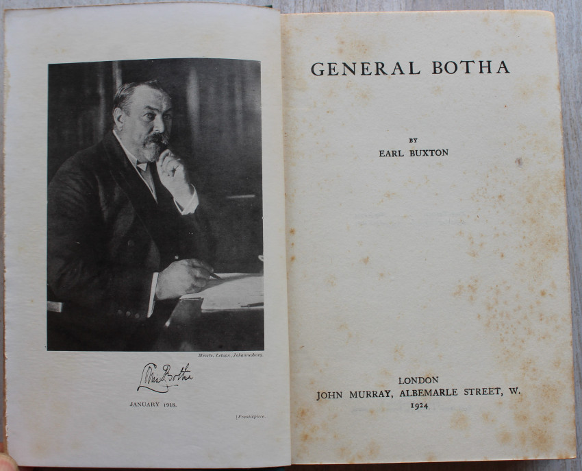 Printed April 1924, just one month after the first edition. Green cloth with the title to the spine. 347 pages. Folding map at rear. Frontispiece of Botha. Slight foxing throughout.
