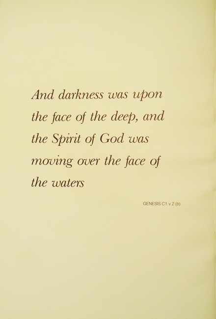 The text according to the revised Standard Bible. The accompanying illustrations are the first four chapters of Genesis.