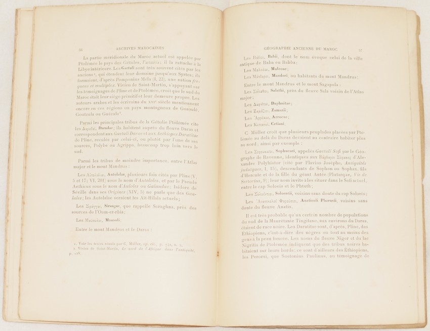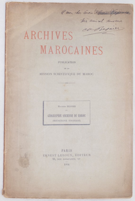 Original edition of 1904 of this study about ancient geography of Maroc or Mauretania Tingitana by the French historian Maurice Besnier (1873-1933).