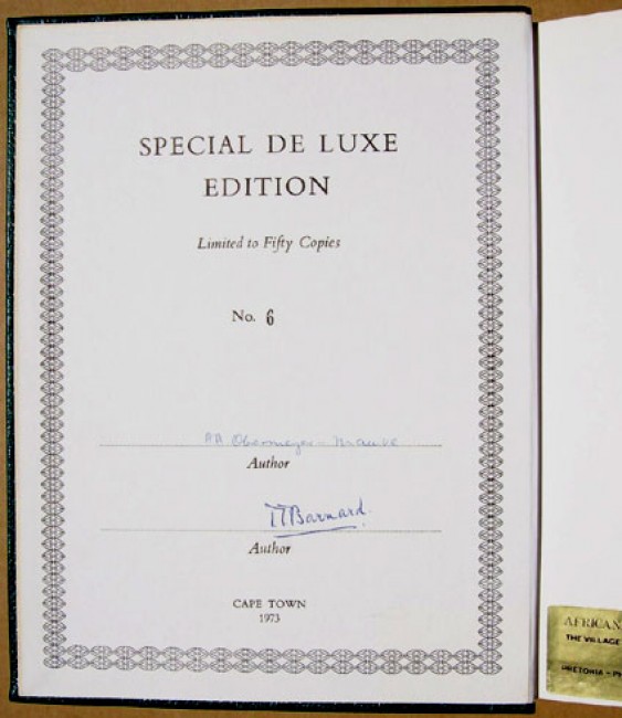 Journal of South African Botany Supplementary Volume No.10. This is copy number 6 of the special de luxe edition limited to 50 copies, bound in a special dark green binding and signed by both authors. xxxi prelims, 316 pages, colour plates by Fay Anderso, Joyce Lewis and others as well as black and white plates.