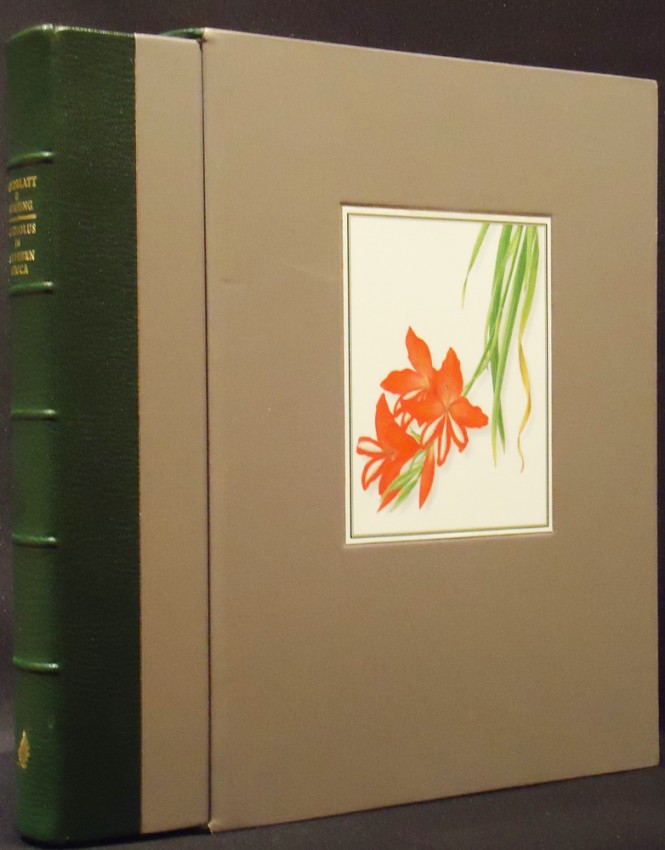320 pages, tipped in colour frontispiece and 144 colour plates, many line drawings and distribution maps, bound by Peter Carstens in half green leather with grey cloth boards,titled gilt on the spine with gilt vignette on the upper cover, housed in a matching slip case with leather lips and an illustration of a gladiolus mounted on the upper panel, a very good copy.