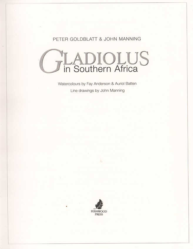 Editor's Note.One of the most important botanical studies published in recent times, this monograph of the genus Gladiolus in southern Africa combines the artistry of two of the world's foremost botanical illustrators with the meticulous work of two highly respected biologists. The exquisitely delicate watercolour paintings by Fay Anderson and Auriol Batten capture faithfully the fragile elegance of almost all the Gladiolus species of the region.’