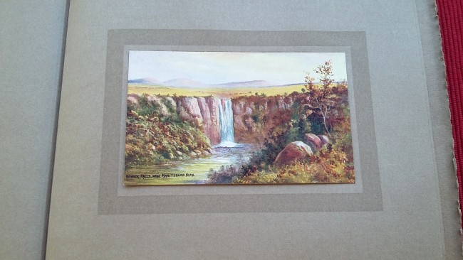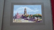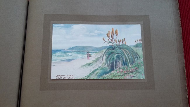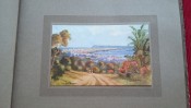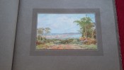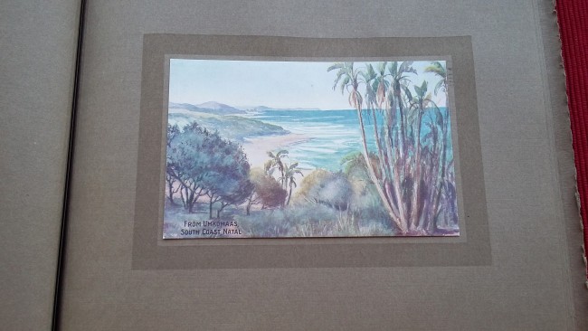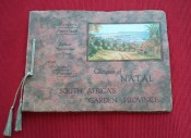 The album has no text except for the title page and the captions on the colour illustrations - soft mottled paper covers with cord tie at the spine, colour picture pasted to the front cover showing The Bay, Durban (this image is repeated inside) - all 12 colour postcard-sized pictures are tipped-in and are on thick stock paper. All colour plates/postcards are in Near Fine condition. Hand-written dedication in ink on the title page "Christmas 1929. With love...".