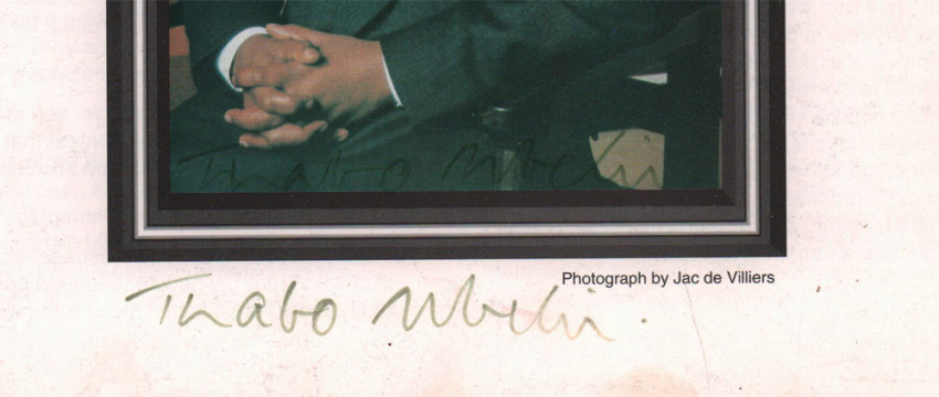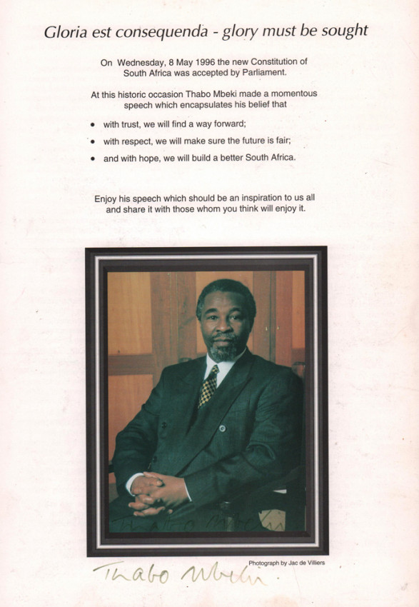 [4] pages, portrait of Mbeki on the upper cover with his signature underneath it, a very good copy.