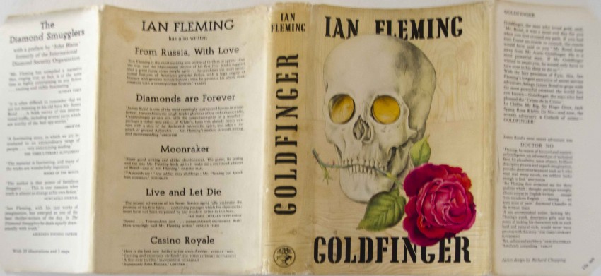 A very nice copy in dustwrapper of the first edition in a first issue dw. of this James Bond title - the seventh in the series. In the original gilt embossed black cloth with a skull on the front panel. The book has a very slight lean but is clean and internally unmarked. The top of the front board has been slightly bumped resulting in a light horizontal crease about 2-3mm. down from the top edge. The dustwrapper is very good, complete and not price-clipped. It is lightly soiled with some light creasing not very visible. There is some edge wear mainly at the extremes of the spine but minimal loss and a couple of short closed edge tears. There is a light stain at the top back edge of the rear panel. (Please see the images)