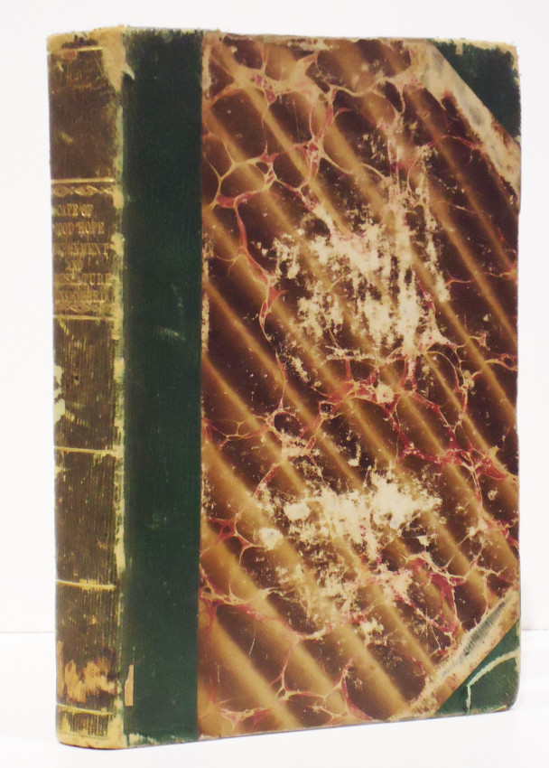 303 pages, worn at the front hinge, half leather with matching marbled boards, titled gilt on the spine –the covers and spine are scuffed and worn, a good copy.