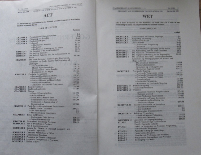 No. 200 of 1993: Constitution of the Republic of South Africa, 1993.