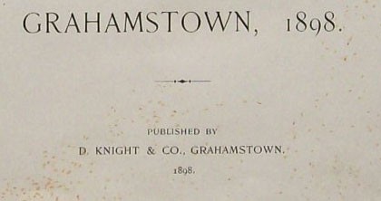 Most of the photographs are credited to Hepburn & Jeanes. The book is dedicated to the first mayor of Grahamstown, Henry Putt. No editor, compiler or author of the preface is cited.