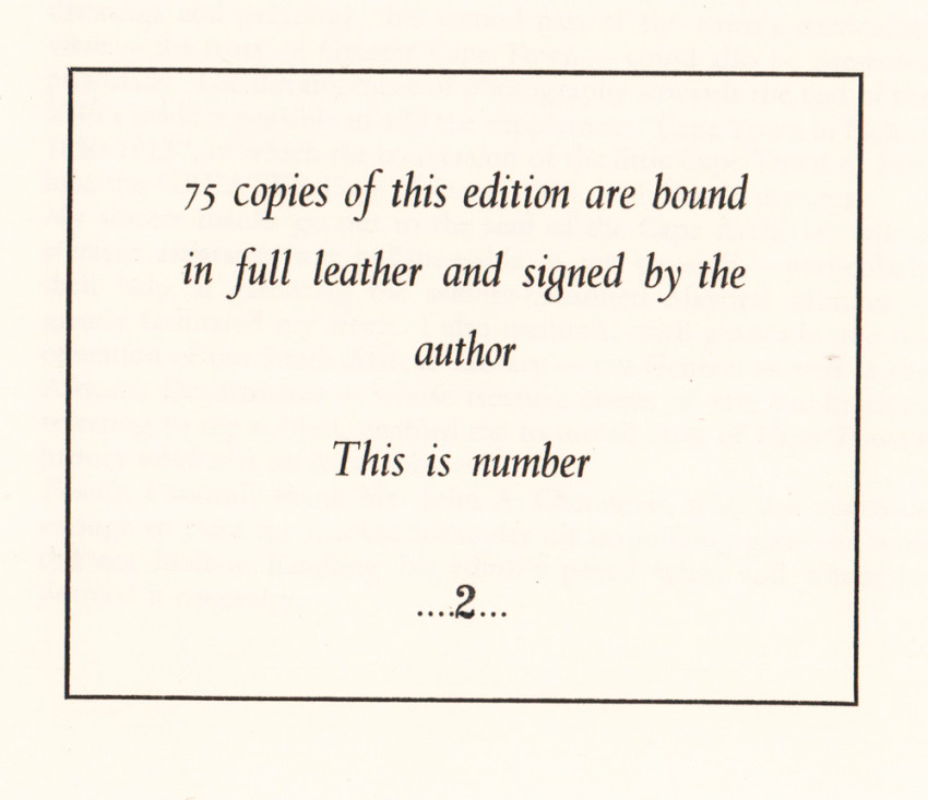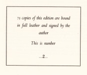 Limitation reads: 75 copies of this edition are bound in full leather and signed by the author. This is number 2.