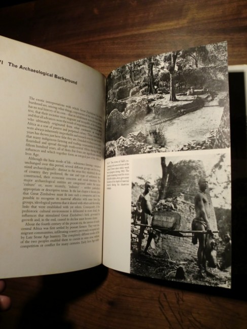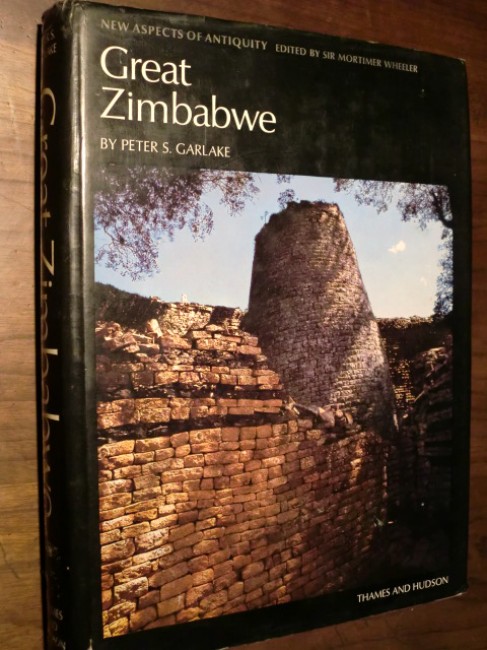 A book on the Zimbabwe Ruins and early Zimbabwean civilizations: "Garlake re-examines and re-assesses the work of all the early excavations, by archaeologists such as D.Randall-McIver (1905), Gertrude Caton-Thompson (1929) who helped elicit information from the shambles left by early 'excavators' such as R.N.Hall,"[front flap, note]. Garlake presents a complete coverage of the site from its first appearance in sixteenth century Portuguese accounts, and then deals with its architecture, early explorations and excavations, trade, traditions and history. Russet boards with gilt titles, inner hinges cracked, text good with occasional foxing, page edges faded. The jacket can be described as 'good', but is rubbed and creased, with some small closed tears in places. A presentable copy; 224pp., with diagrams, photographs and illustrations.