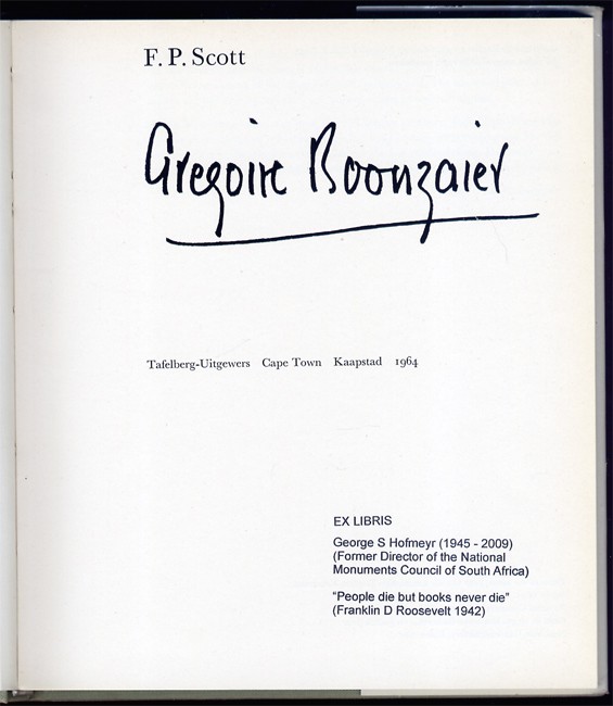 149 pages, frontispiece, numerous illustrations, text in English and Afrikaans, turquoise cloth, library stamp of a previous owner on the title page, dust jacket slightly soiled with a small tear at the top of the spine.