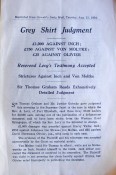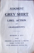 Pamphlet, Judgement, Grey Shirt, Libel Action at Grahamstown, stapled in wrapper, 64 pages, A5 size, condition:good.