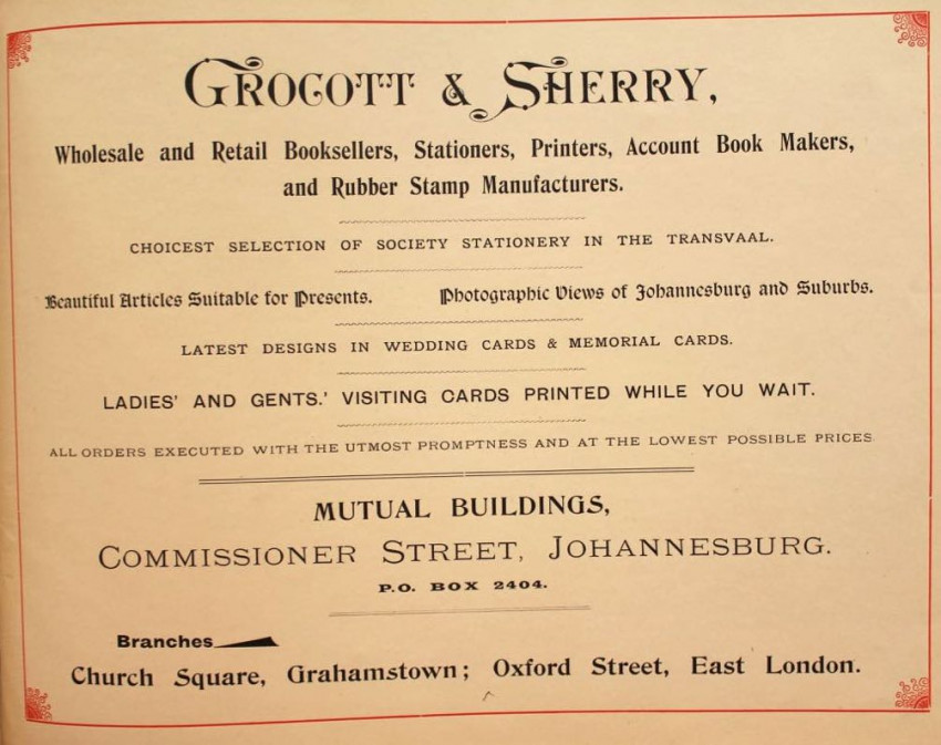 Cover title: Grocott & Sherry's Souvenir of Johannesburg.