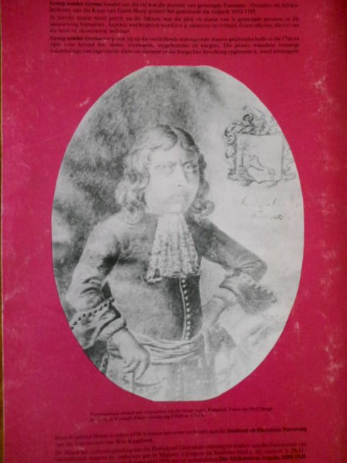 Dr Heese was a senior researcher in history at the University of the Western Cape when he wrote this book. His 1976 PhD was for "Die Afrikaners in Angola 1880-1928". Although his book was written as an academic genealogical study, its publication caused such an uproar that many copies were destroyed or hidden away: in any event, copies are extremely difficult to come by only 30 years after the book was published. The uproar was because the author had identified some 750 families whose marriages or similar relationships were between "Europeans" and "Coloureds" in the period between Van Riebeeck's arrival in 1652 and the first British occupation in 1795. The alphabetical list runs from Abel to Zschech, with many well-known family names along the way .