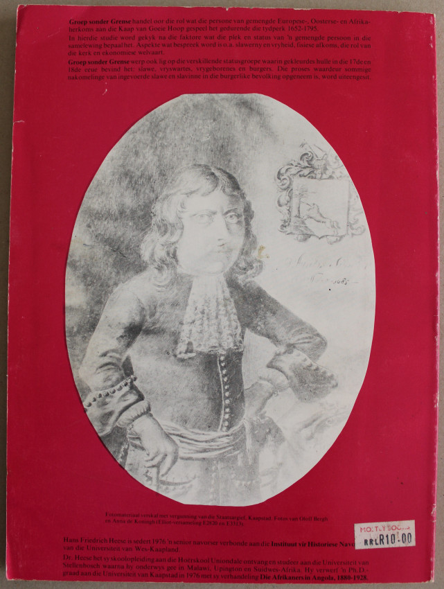Dr Heese was a senior researcher in history at the University of the Western Cape when he wrote this book. Although his book was written as an academic genealogical study, its publication caused such an uproar that many copies were destroyed or hidden away: in any event, copies are extremely difficult to come by only 30 years after the book was published. The uproar was because the author had identified some 750 families whose marriages or similar relationships were between "Europeans" and "Coloureds" in the period between Van Riebeeck's arrival in 1652 and the first British occupation in 1795.