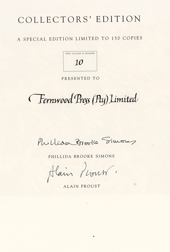 The limitations page reads: Collectors' Edition. A special edition limited to 150 copies. This volume is number 10 presented to Fernwood Press (Pty) Ltd signed by the author and the photographer.