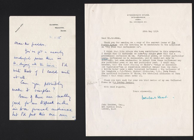 Letters written to John Graddon, sometime treasurer of the Poetry Review: