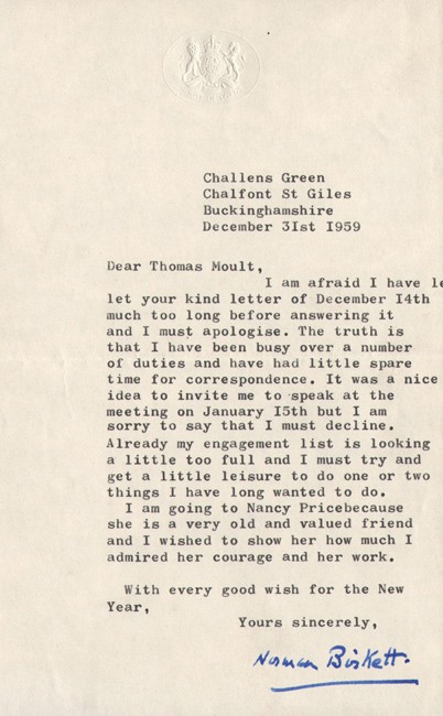 Als from Walter de la Mare (1873-1956) poet, dated 17th December 1948