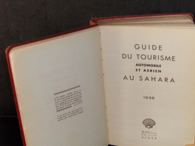 This famous but rare guide (in French) may have been the first designed to help both motorists and aviators to navigate the Sahara - for, as the guide puts it, reasons of exploration (such as visiting Timbuctoo), sports, photography and hunting. Indeed, it goes further, claiming that for several years the Sahara has become the region of choice for motoring and aerial tourism.