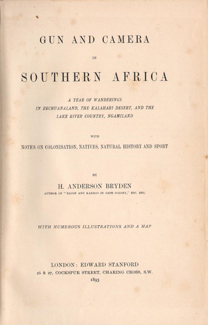 Czech: An annotated Bibliography of African Big Game hunting Books, 1785 to 1950, page 24/25, ‘Bryden traveled through Bechuanaland, hunting antelope and small game, crossed the Kalahari Desert, then hunted giraffe near Lake Ngami. Upon reaching the Botletli River plains, Bryden’s group bagged zebra, wildebeest, lechwe, and other game. Recrossing the Kalahari, the expedition took trophy eland. There is a further chapter on the distribution of large game.’