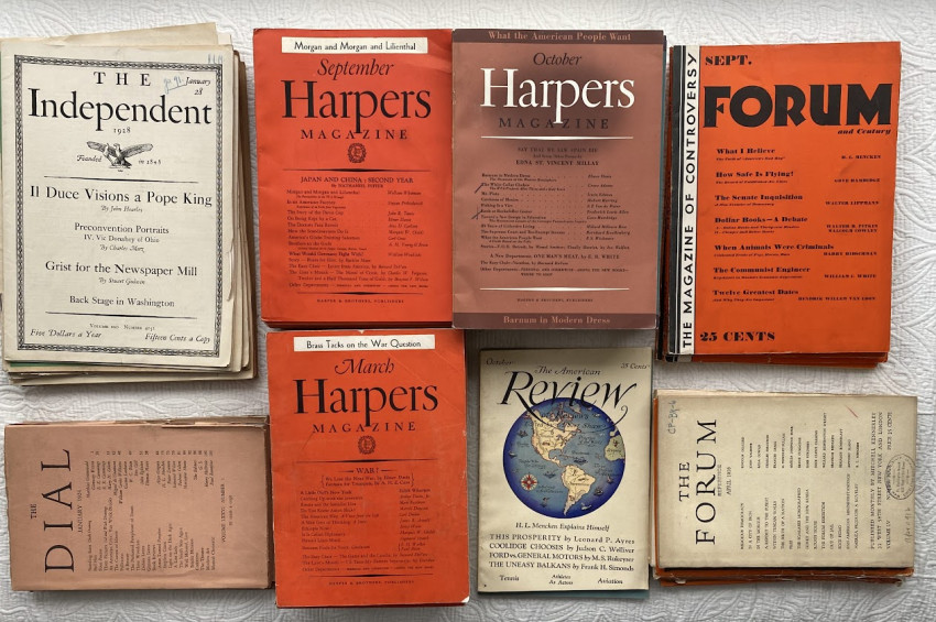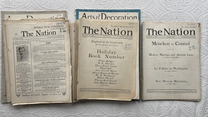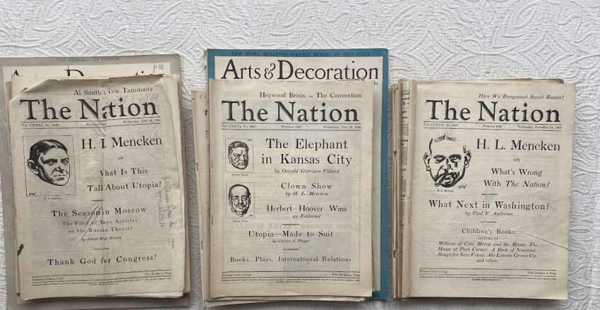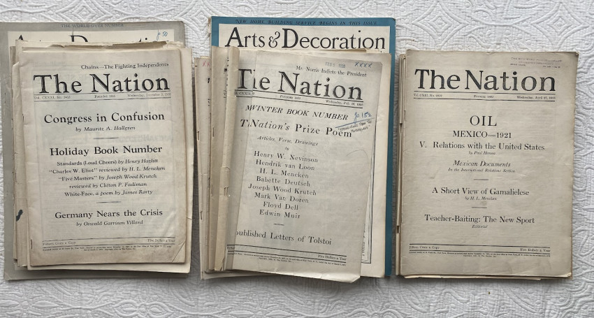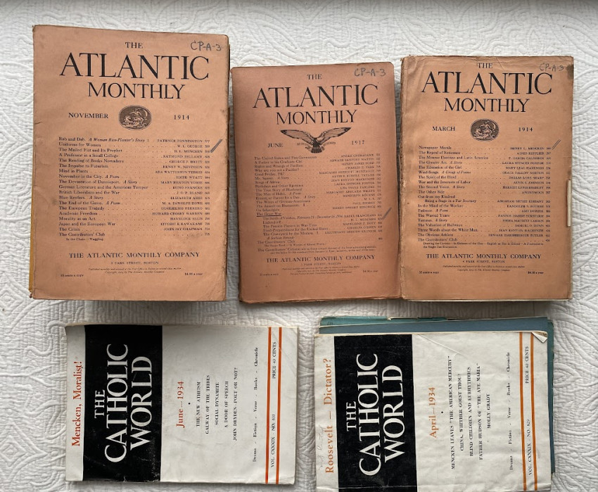 Henry Louis MENCKEN (1880-1956). - [Selection of periodical works, all with some connection to Mencken: some with contributions from him, some with articles on him]. New York, [etc.]: 1914-1931. 113 issues from various works, various sizes. (Condition is variable, but generally excellent). Various bindings. Provenance: Alexander F. Haas collection (most with reference numbers at the front, added by Haas). (113)