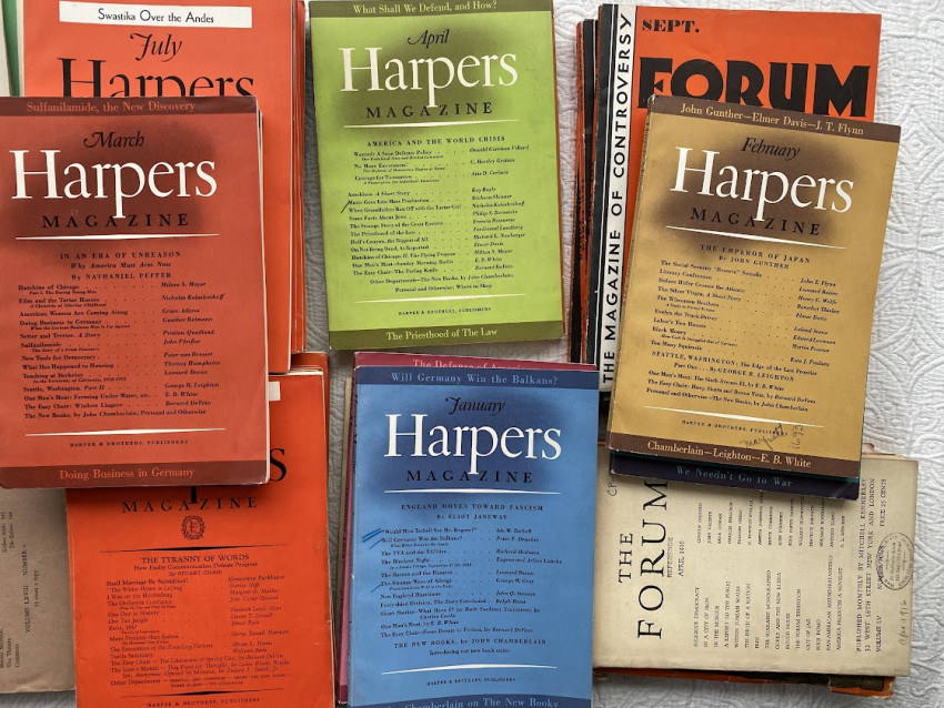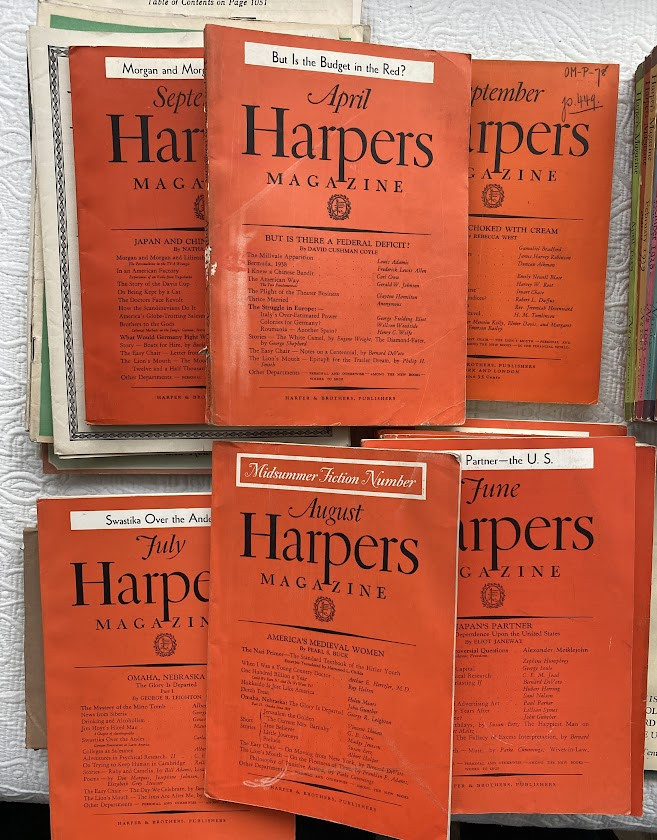 3.Harper’s Magazine. Sept. 1926, March 1937, May, 1937, Nov-Dec. 1937, Jan. 1938, March-Apr. 1938, June 1938-May 1939. 20 issues.