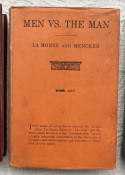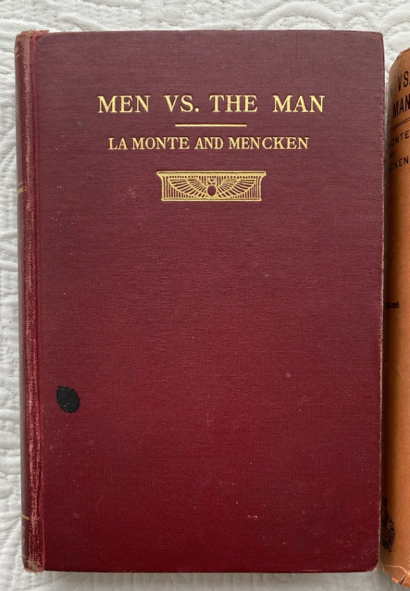 - & 11.Men versus the Man: A Correspondence between Robert Rives LaMonte, Socialist, and H. L. Mencken, Individualist. New York: Henry Holt & Co ., 1910. Octavo. 2 copies: a). dark red ribbed cloth, lettered in gilt. Annotations by a philosophy student. 1st issue binding ; b). orange/red cloth, lettered in black, later issue binding, dust-jacket. Frey A1.
