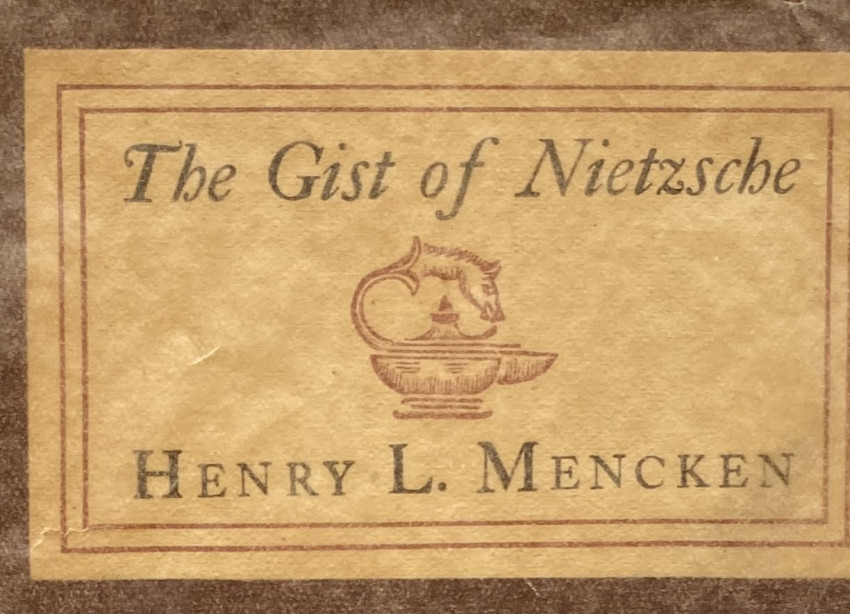 12.The Gist of Nietzsche. Boston: John W. Luce & Co ., 1910. Small 8vo. Cloth, glassine wrapper (tears to wrapper otherwise excellent). Frey C3