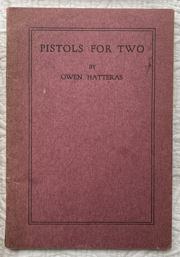 16.Pistols for Two by Owen Hatteras. New York: Alfred A. Knopf, 1917. (George Jean Nathan wrote the Mencken sketch; H. L. Mencken wrote the Nathan profile.) Small octavo. Red/purple wrappers. Excellent copy. Frey A3