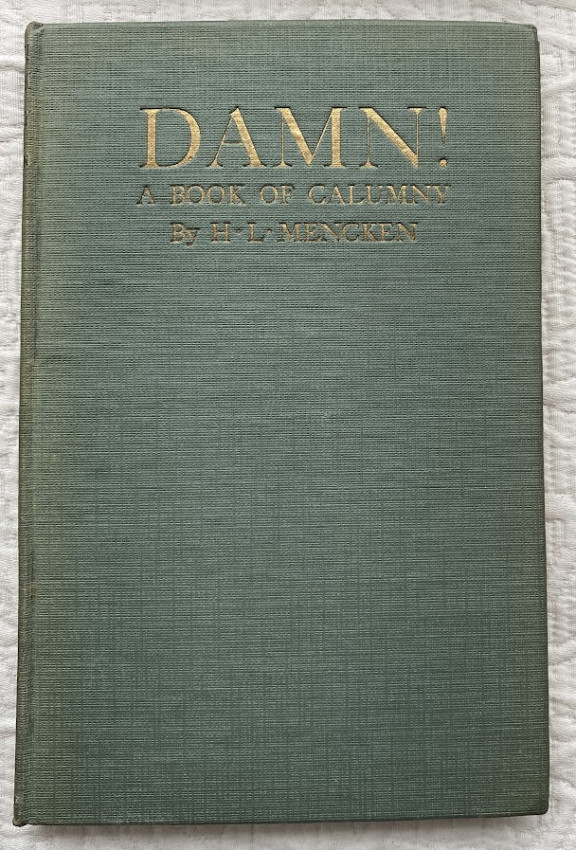 18.Damn! A Book of Calumny. New York: Philip Goodman Co., 1918. Small octavo. Fourth edition. Orange cloth, black lettering, (v. slight discoloration to upper cover, no d/j but otherwise excellent). Frey 8d.