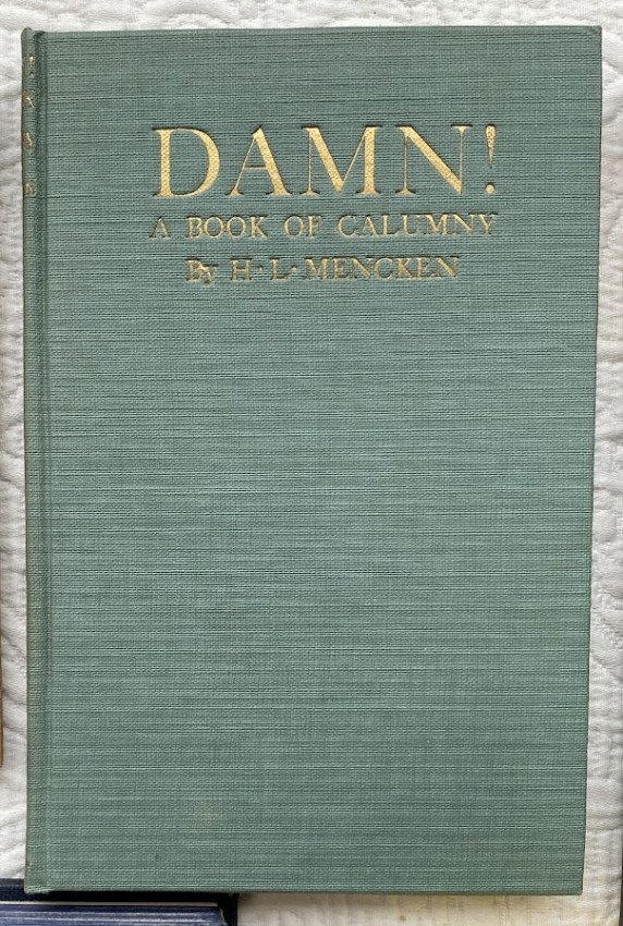 6.Damn! A Book of Calumny. New York: Philip Goodman Co., 1918. Small octavo. Boxed. First edition. Blue cloth, gilt lettering, no d/j but otherwise excellent. Frey 8a.