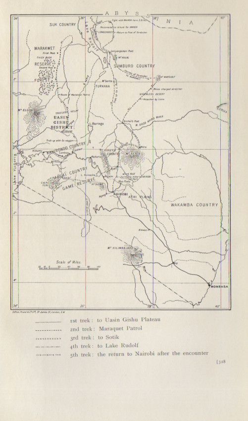 An exciting work of travel, military experiences and big game hunting adventures by an officer in the King’s African Rifles. The author had to contend with raiding Abyssinian tribesmen, but found time to hunt elephant, rhinoceros and lion, particularly in the Kerio Valley. Near the Ethiopian border, Lloyd-Jones was severely wounded while fighting a band of raiders, with gangrene setting into his foot. The ‘Havash’ of the title refers to the Arab word for Abyssinians, considered to be ferocious fighters. Original brick red cloth with gilt vignette to top cover, and gilt spine titles. Small bump to edge of vignette. Spine lightly sunned. Original endpapers firm and tight. Well illustrated with photo plates and map.