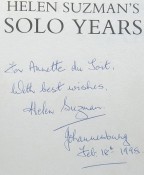 Inscribed "To Annette du Toit, with best wishes, Helen Suzman, Johannesburg Feb 18th 1998".