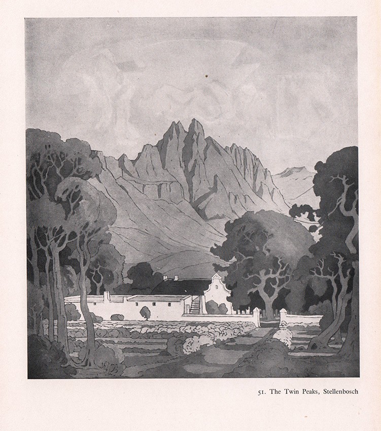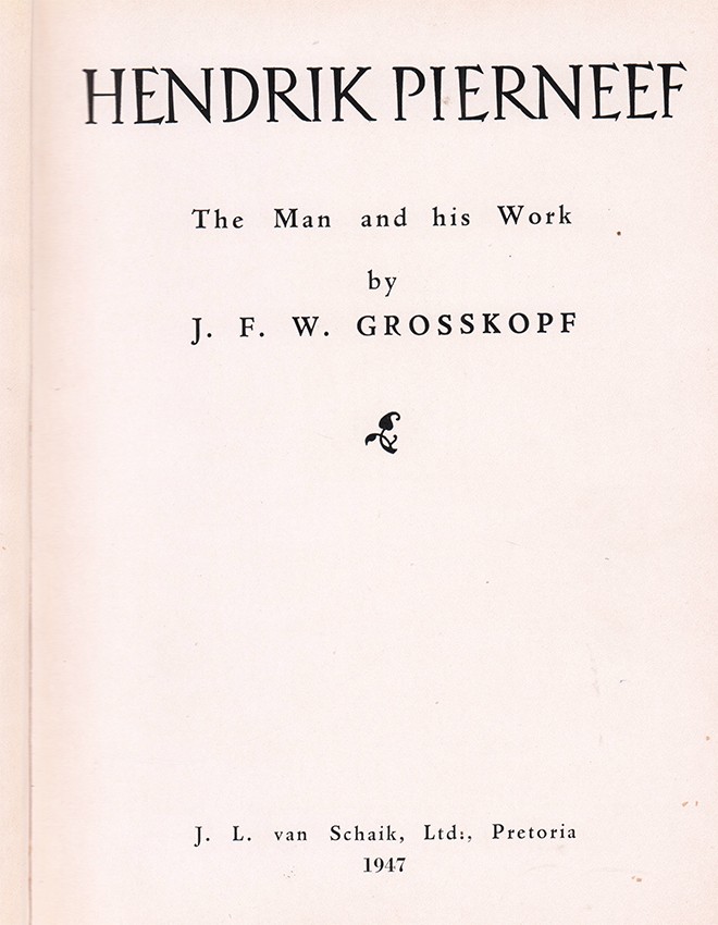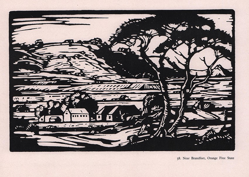 First English edition. 24 pages of text, frontispiece of Pierneef, 31 oil paintings – 4 in full colour plates, 6 watercolours, 4 etchings, 20 woodcuts, 13 black and white drawings, original pictorial brown cloth with decorative gilt on the upper cover, a good copy, very scarce in the dust jacket, which is worn and now preserved in a protector.