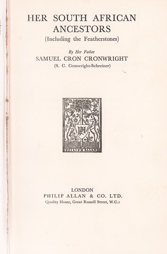 214 pages, frontispiece, 15 illustrations, uncut fore edge and bottom edge, blue cloth with a gilt armorial crest on the upper cover, titled gilt on the spine, a good copy.