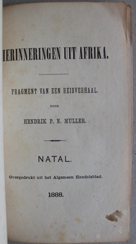 Muller was a prolific writer. Over the course of his life he published well over two hundred articles, brochures, and books about his travels, South Africa and the Boers, and Dutch foreign policy. Muller gathered a large fortune with well appointed private investments. He bequeathed his considerable wealth to a private fund in support of academic research and cultural heritage. (wikipedia)
