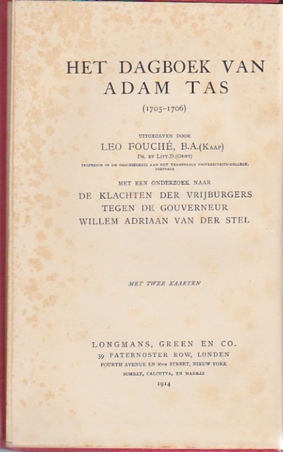 The introduction includes fifteen pages on the background of Adam Tas and sixteen pages on the authenticity of the diary.