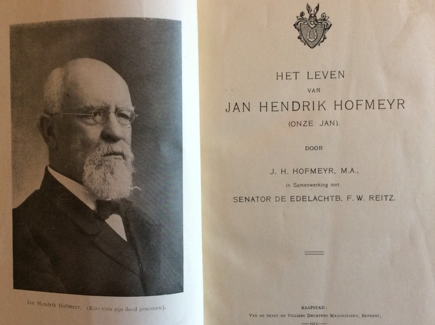This is a nearly very good copy of the first edition of Jan Hofmeyr's biography of Onze Jan, his father, published more than a century ago. Father and son were both leading politicians, the son becoming Deputy Prime Minister under Smuts.